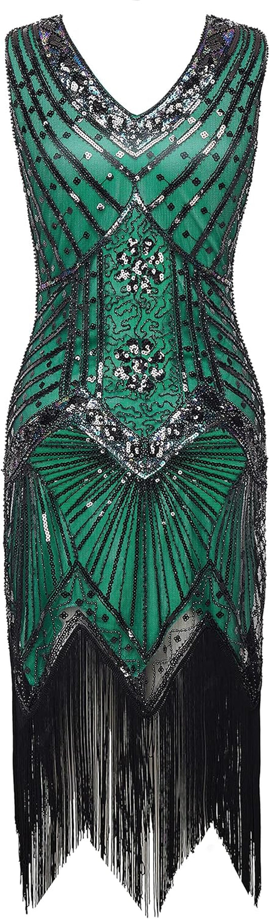 Women'S Flapper Dresses 1920S V Neck Beaded Fringed Great Gatsby Dress